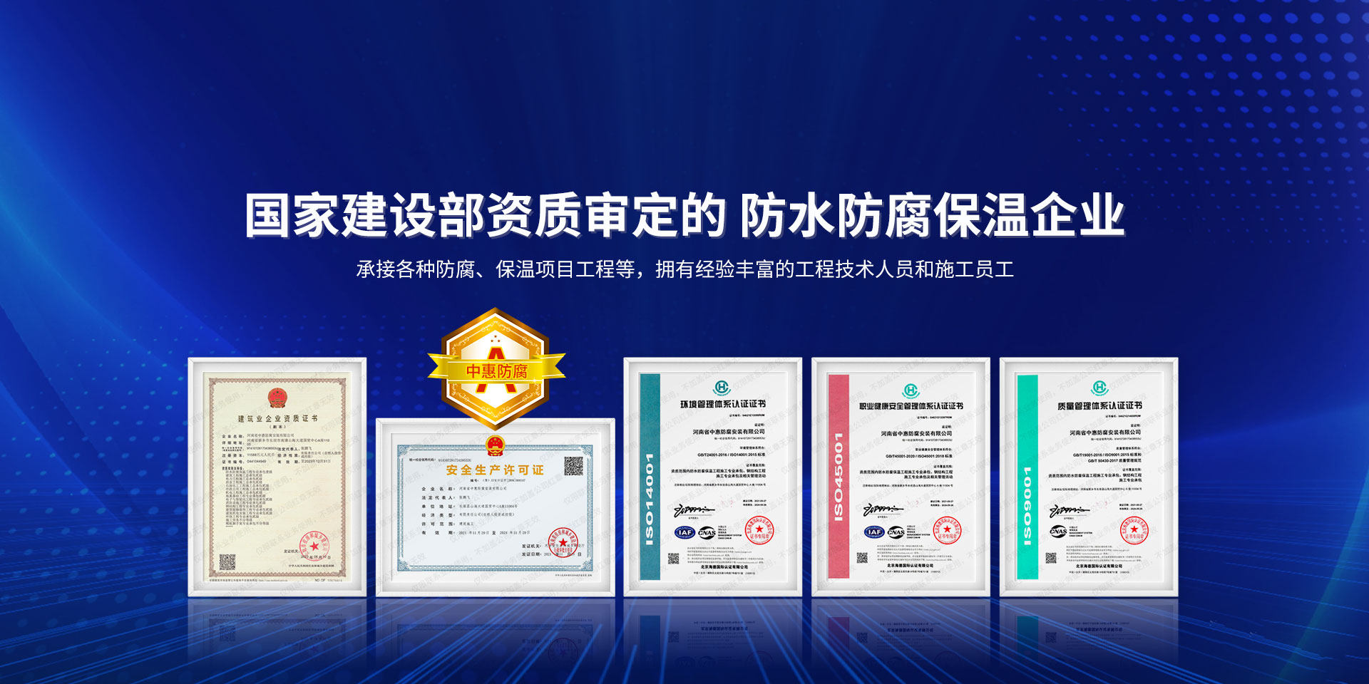 公司經營范圍:防水防腐保溫工程;消防設施工程;建筑裝修裝飾工程;建筑機電安裝工程;電力工程;建筑工程;石油化工工程;工業清洗工程;油罐清洗工程;鋼結構工程;環保工程;模板腳手架工程;電纜防火封堵、防污閃噴涂、外墻外保溫工程;各類施工勞務作業;設備維修、船舶鉚焊、涂裝;電力工程材料、建材、防水材料、防火材料、防腐保溫材料銷售,并相繼通過了GB/T19001-2008idtISO9001:2008GB/T50430-2007質量管理體系認證證書。GB/T24001-2004idtISO14001:2004環境管理體系認證證書。GB/T28001-2011idtOHSAS18001:2007職業健康安全管理體系認證證書。公司是中國防腐蝕于防護協會、中國施工企業管理協會、電力協會和中國鋼結構防水協會會員單位。 公司的經營業務涵蓋了石油、化工、電力、冶金、煤炭、船舶、國防、燃氣、水利、環保、交通運輸、航空及國防軍工和輕紡市政等行業的防腐保溫絕熱設備。鋼結構安裝、防火、防水、金屬噴鍍、聚脲噴繪、陰極保護、防滲透堵漏、玻璃鋼及各種磚版材料襯里、橡膠襯里、煙氣硫和耐酸溶劑腐蝕等工程施工。公司連續十年榮獲“省市先進施工企業”“安全生產先進單位”“重合同,守信用企業”和“AA***資質企業”的稱號。2000年被命名為市級文明單位,2002年被國家工商行政管理局命名為“重合同,守信用的企業”、被中國工業防腐蝕技術協會命名為“防腐蝕企業,能源節約及環境保護領域有豐富的經驗和***的業績。工程一次交驗合格率100%。其中攀枝花鋼鐵公司煉鐵廠四號高爐及熱風爐防腐工程、上海寶鋼公司煤氣柜防腐工程、撫順石油一廠裝置防腐項目、齊魯石化公司稀烴廠高塔防腐工程、吉林化學工業公司煉油廠油罐防腐工程、天津石化熱電廠六號爐頂棚聯絡管保溫工程、大慶油田(太倉)力神泵業工程、中國化學工程第十一建設工程、中原油田勘探局工程、中國石化銷售有限公司華北分部、魯皖輸油管道工程、貴州開磷息烽合成氨工程、陜西黃陵煤化工程、中國石油天然氣西部管道塔里木輸油工程、邯鋼集團邯寶鋼鐵公司煉鐵工程、德州供電工程、吉寶(南通)船廠工程,偃師華潤熱力工程、鄭州熱力總公司。 河南省中惠防腐安裝有限公司愿以豐富的施工經驗,***的技術,***的設備,***的管理,***的服務,竭誠為國內外廣大的用戶提供***滿意、******的工程作品。 我公司愿與國內外同仁一道,團結協作,共同推進防腐蝕行業發展! 公司地址:河南省長垣縣建設路北段360號 固定電話:0373-8866488 郵編:453400 網址:http://www_zhff_com_cn.zgdskfcypt.com